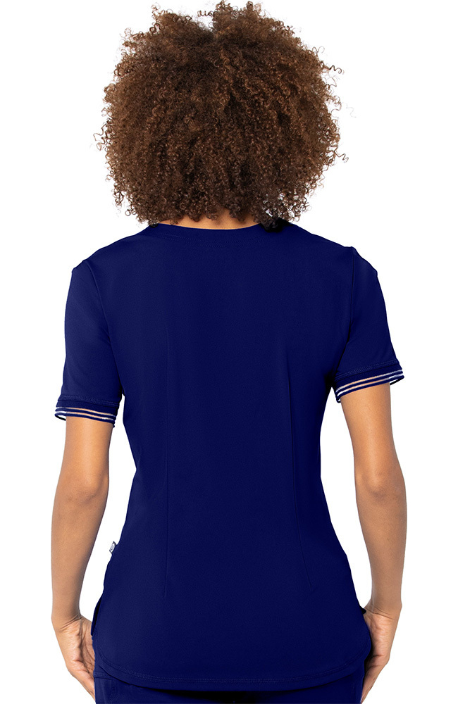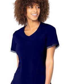 Enjoy the comfort stretch and simplicity of the ProFlex by Landau Women’s V-Neck 2 Pocket Solid Scrub Top. The flattering V-shaped neckline and side seams are complimented by the linear signature tape.
