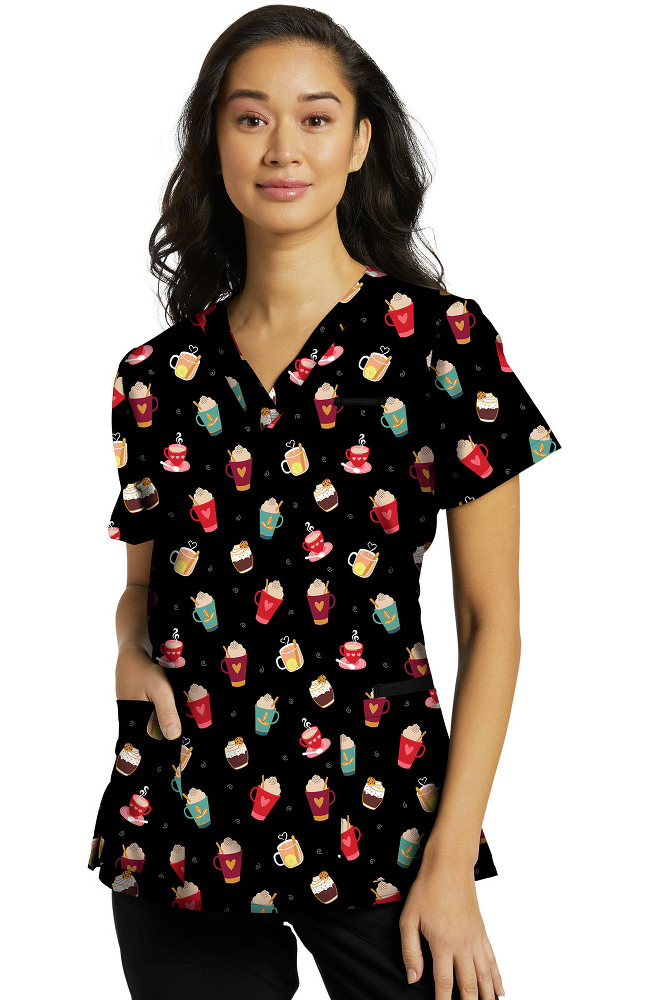 White Cross Clearance Women’s Cosy Drinks Print Scrub Top