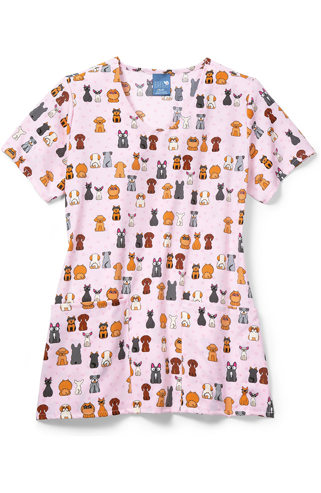 With its sweet pink hue and plethora of pups, the Zoe and Chloe Women’s Floofster Print Scrub Top is a guaranteed favorite. This two-pocket top is perfect for pediatric or veterinary settings.