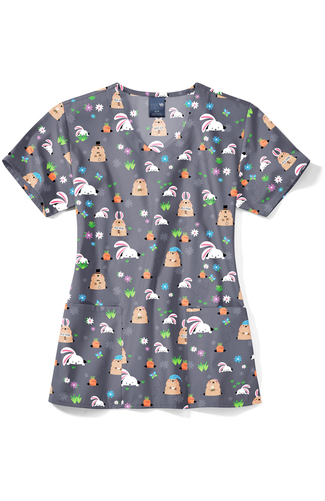 Rise and shine in the Zoe and Chloe Women’s V-Neck Hello Spring Print Scrub Top. Made from soft, breathable cotton, it’s comfortable, functional, and fashionable all at once.